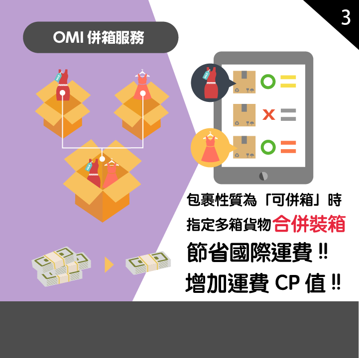 ◆商品國際寄送代理服務之相關業務處理。(含貨物的包裝、重新打包、相關法定資料作成)
